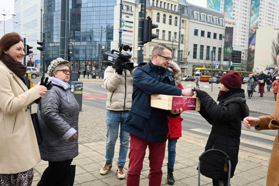 "Dzisiaj fajne, radosne święto - Walentynki. Ludzie się kochają, mamy nadzieję, że kochają się każdego dnia, ale dzisiaj w sposób szczególny jest emanacja tej miłości i dzisiaj Lewica, Nowa Lewica, Partia Razem też umilają łodzianom życie. Rozdajemy lizaki, rozdajemy krówki, ale przy okazji Walentynek chcemy też powiedzieć o jednym, bardzo ważnym problemie, z którym borykają się głównie młodzi obywatele naszego kraju. To jest brak dostępności własnego mieszkania. To jest ta zmora, która trapi Polskę od kilkudziesięciu lat, z którą żaden rząd nie był w stanie sobie poradzić. Młodzi ludzie często mieszkają z rodzicami, brakuje w Polsce dwóch milionów mieszkań. Wynajem mieszkania to dobro luksusowe, a wzięcie kredytu, w tych czasach, to zarobki na poziomie 10-15 tys. zł, żeby w ogóle myśleć o jakimkolwiek kredycie na jakiekolwiek mieszkanie. My jako Lewica zawsze uważaliśmy, że mieszkanie jest prawem, a nie towarem i mówimy to bardzo wyraźnie i bardzo jednoznacznie" - podkreślał poseł Tomasz Trela.